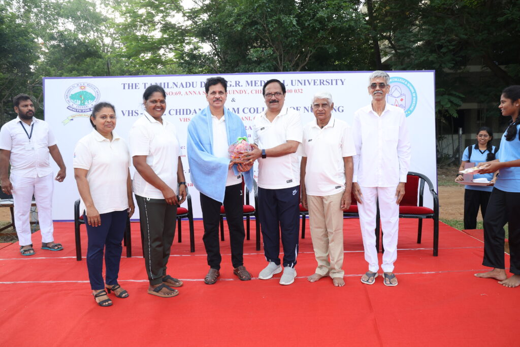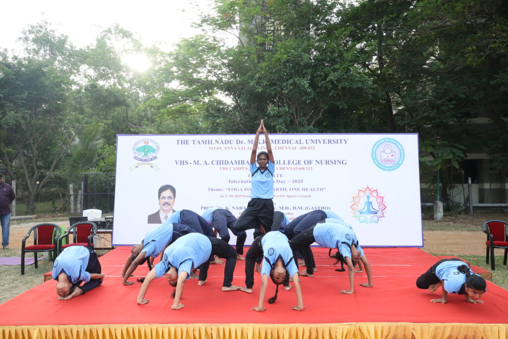 The event was made more special by the presence of Dr. Narayanasamy, Vice Chancellor of Dr. MGR Medical University, who was invited as the Chief Guest. In his address, he highlighted the growing importance of yoga in daily life and its long-term health benefits, especially for those in the healthcare profession.
